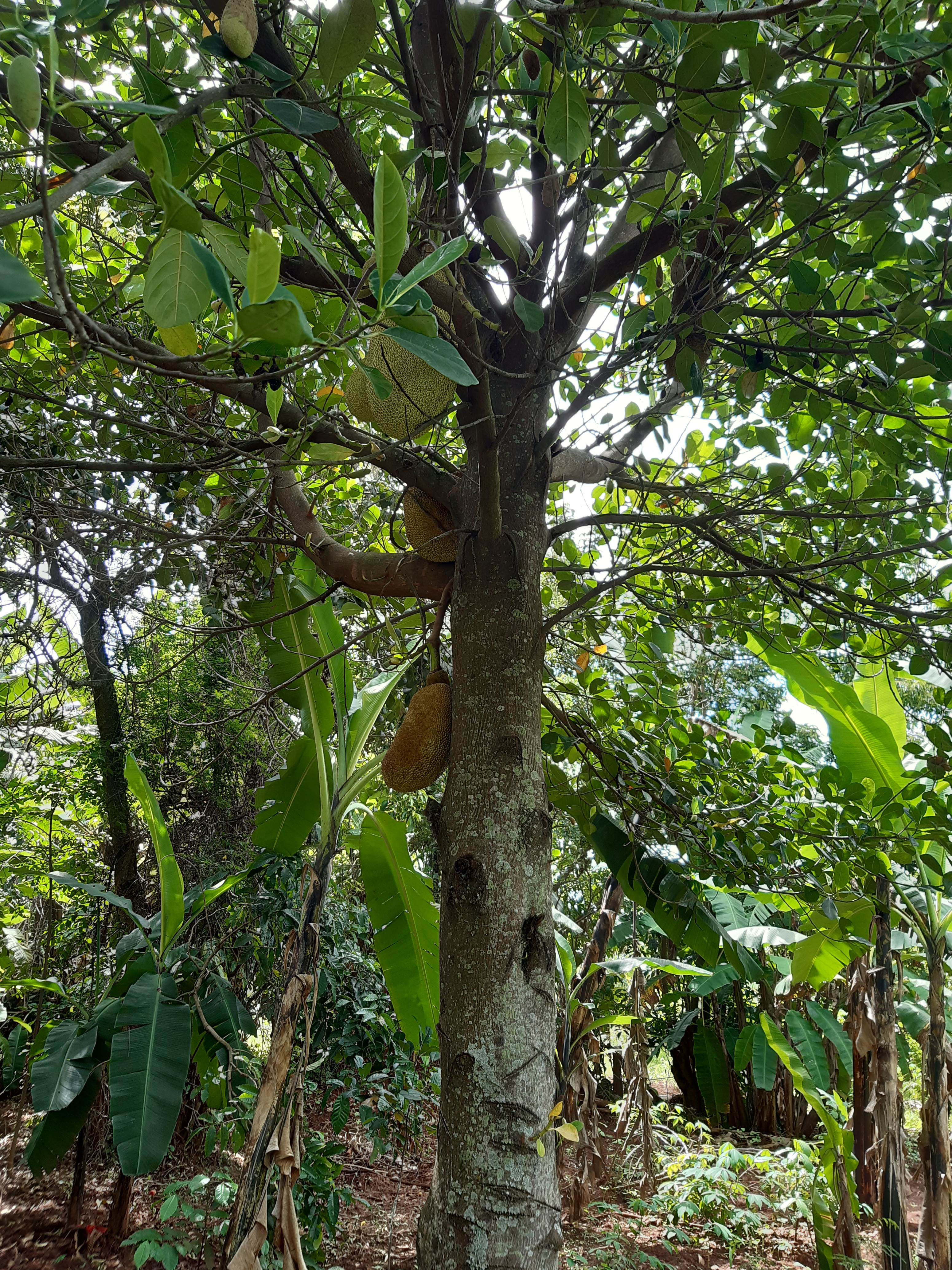 Within three to six years after planting, the jack tree starts to flower, and in two-three months after blossoming, young and unripe green skinned fruits are ready to be picked as a vegetable.